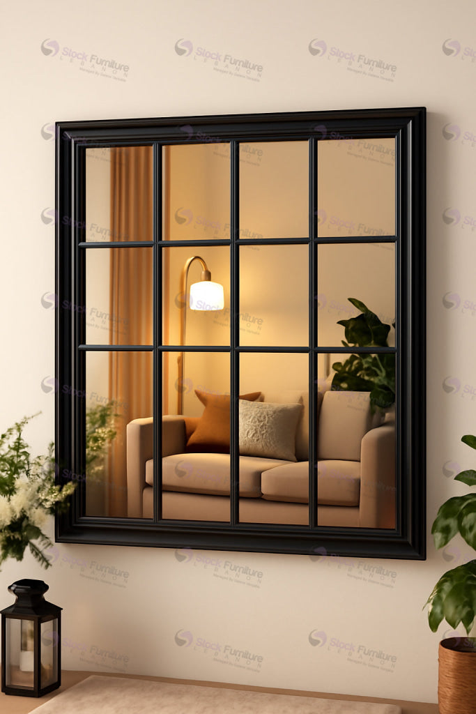 Enhance your living space with this stylish grid windowpane mirror. Featuring a sleek black frame, this mirror adds depth and elegance to any room. Perfect for living rooms, bedrooms, or entryways, it creates an illusion of more space while reflecting natural and artificial light beautifully. Its classic design complements various interior styles, making it a versatile and functional decorative piece. Bring sophistication and brightness to your home with this high-quality modern mirror